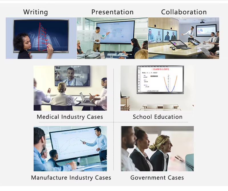 कनेक्टिविटी के संदर्भ में, शिक्षण के लिए हमारी इंटरैक्टिव स्क्रीन वाईफाई और आरजे 45 क्षमताओं दोनों के साथ आती है, जो स्थिर और विश्वसनीय नेटवर्क कनेक्टिविटी सुनिश्चित करती है। इसके अतिरिक्त, प्रचुर मात्रा में I/O पोर्ट अन्य उपकरणों और बाह्य उपकरणों के साथ आसान एकीकरण के लिए अनुमति देते हैं, कार्यक्षमता और सुविधा को बढ़ाते हैं।