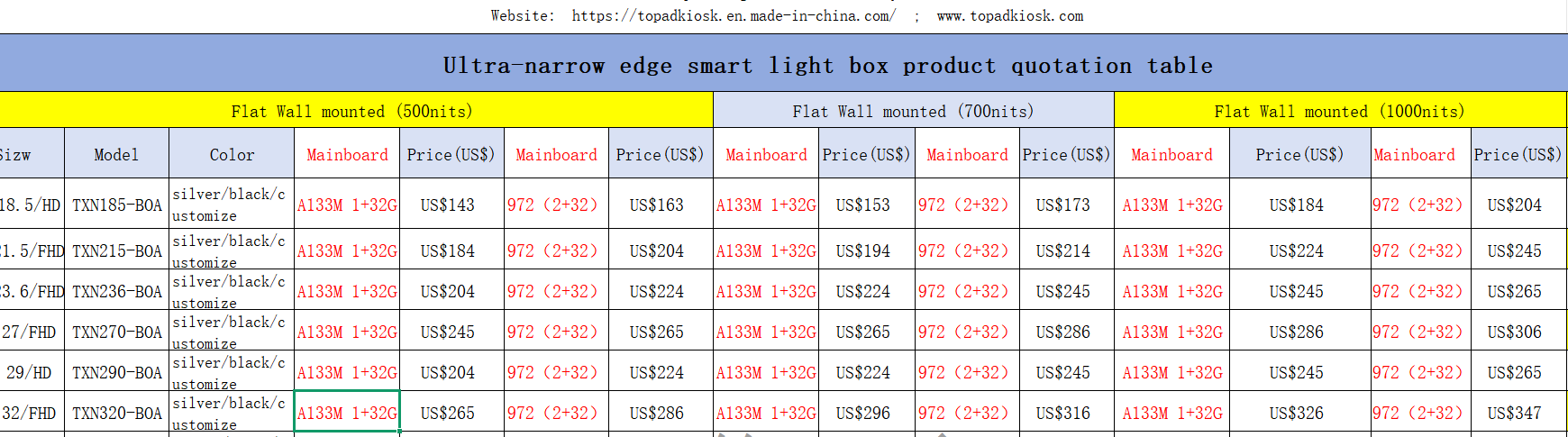 अपने व्यवसाय की जरूरतों को पूरा करने के लिए एक विश्वसनीय 4K संकीर्ण बेजल इनडोर दीवार माउंटेड डिजिटल साइनेज 1000nits की तलाश कर रहे हैं? चीन में स्थित एक अग्रणी निर्माता और आपूर्तिकर्ता के रूप में शेन्ज़ेन टॉपैडकियोस्क डिस्प्ले टेक्नोलॉजी कं, लिमिटेड से आगे नहीं देखें, हम विभिन्न अनुप्रयोगों के अनुरूप उच्च गुणवत्ता वाले डिजिटल साइनेज उत्पादों और समाधानों को प्रदान करने में विशेषज्ञ हैं।
