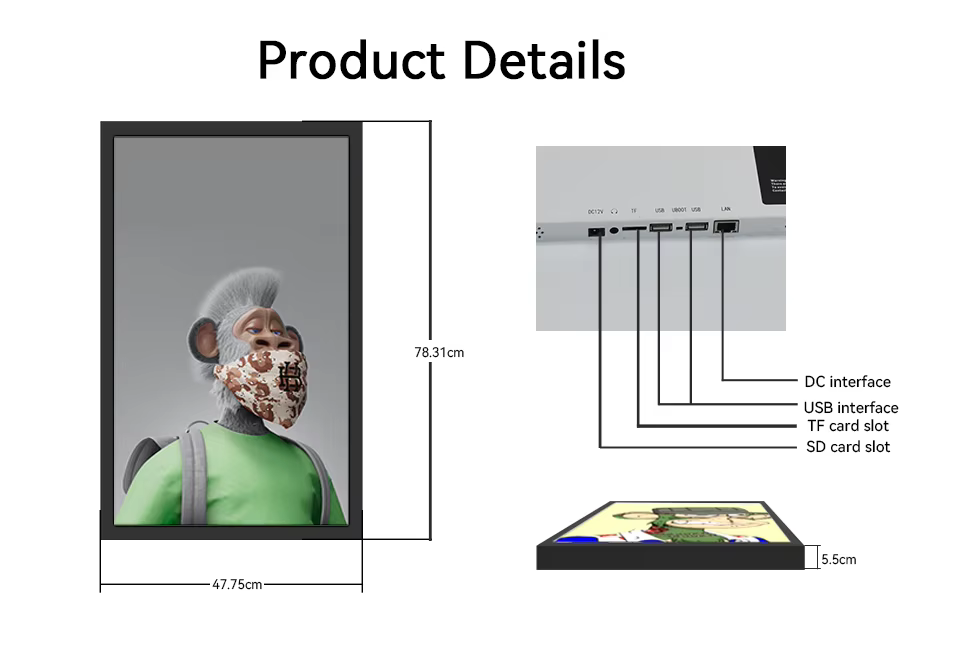 एक वाईफाई थिन वॉल माउंट डिजिटल साइनेज की तलाश में आर्ट फ्रेम 18.5/21.5/32/43/55/65 प्रदर्शित होता है? चीन में स्थित एक अग्रणी निर्माता और आपूर्तिकर्ता के रूप में शेन्ज़ेन टॉपैडकियोस्क डिस्प्ले टेक्नोलॉजी कं, लिमिटेड से आगे नहीं देखें, हम विभिन्न अनुप्रयोगों के अनुरूप उच्च गुणवत्ता वाले डिजिटल साइनेज उत्पादों और समाधानों को प्रदान करने में विशेषज्ञ हैं।